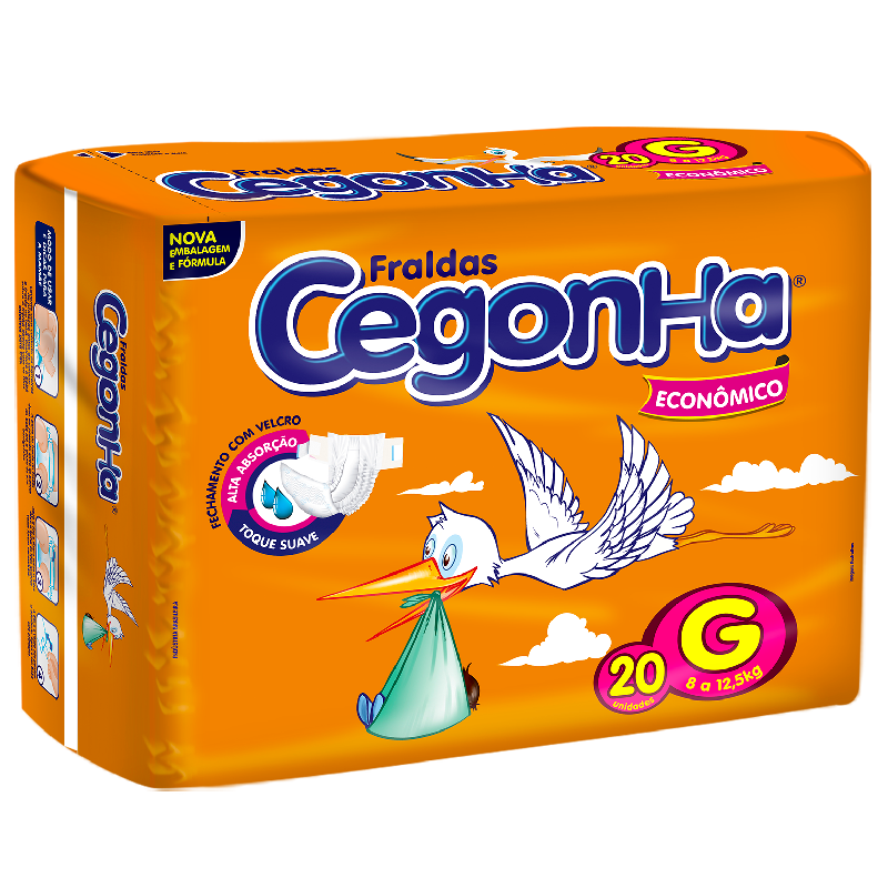 As Fraldas Cegonha possuem toque suave não incomodada o bebê alem de possuir barras de proteção que impede do xixi vazar, também conta com uma alta absorção e formato que auxilia a distribuição do xixi.