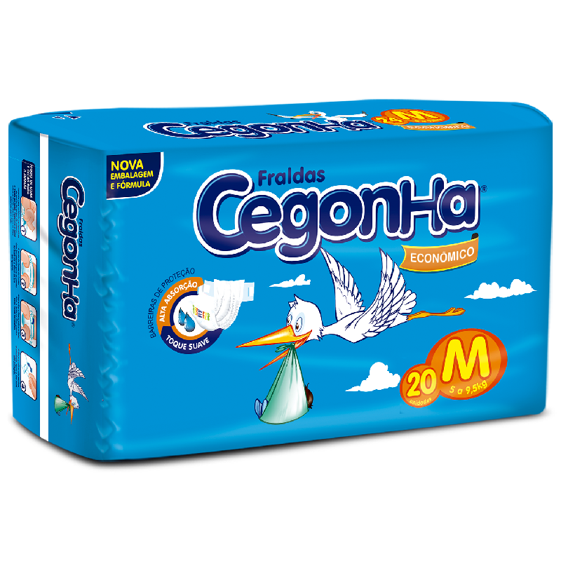 As Fraldas Cegonha possuem toque suave não incomodada o bebê alem de possuir barras de proteção que impede do xixi vazar, também conta com uma alta absorção e formato que auxilia a distribuição do xixi.